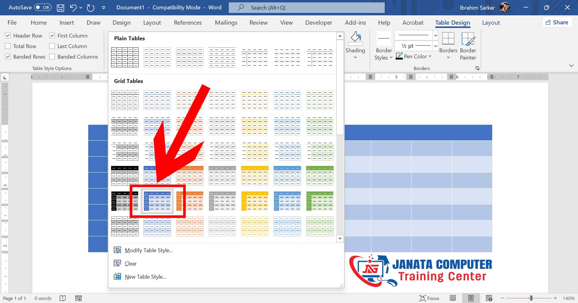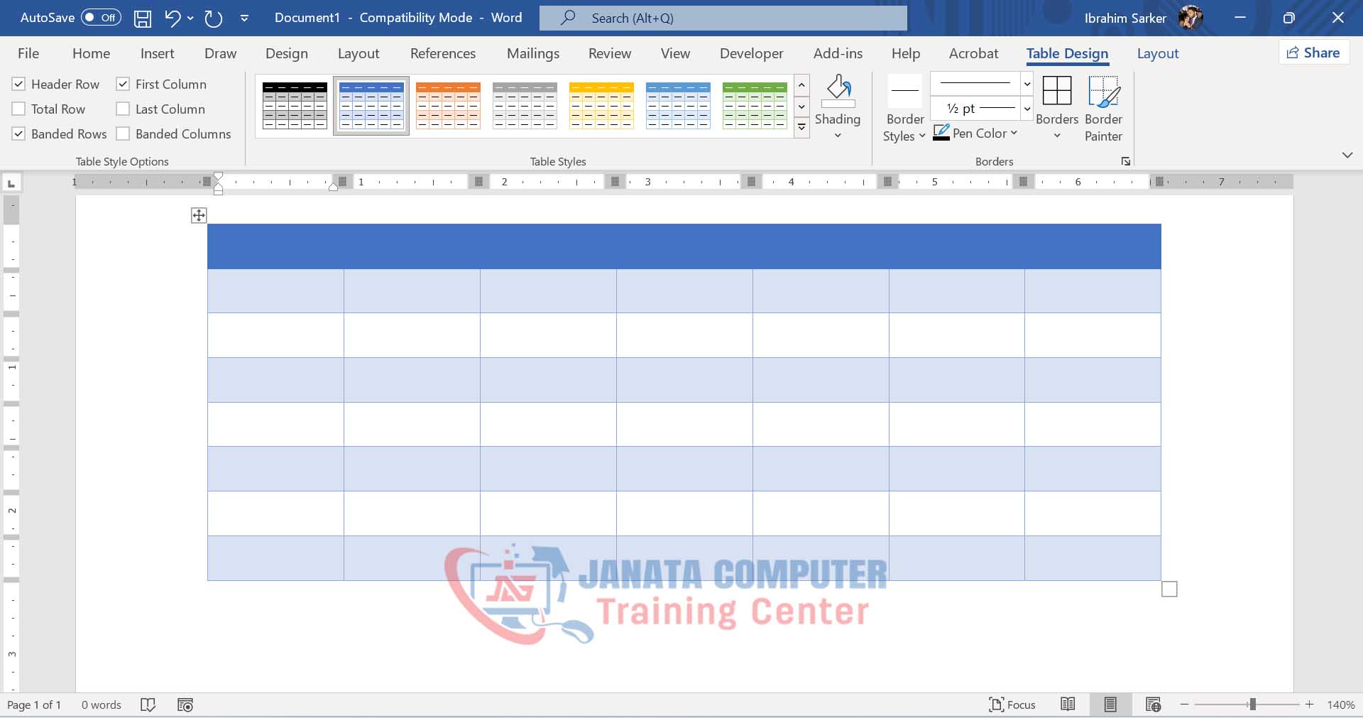 এটা সিলেক্ট করার পর দেখেন টেবিলের ডিজাইন পরিবর্তন হয়ে গেছে।