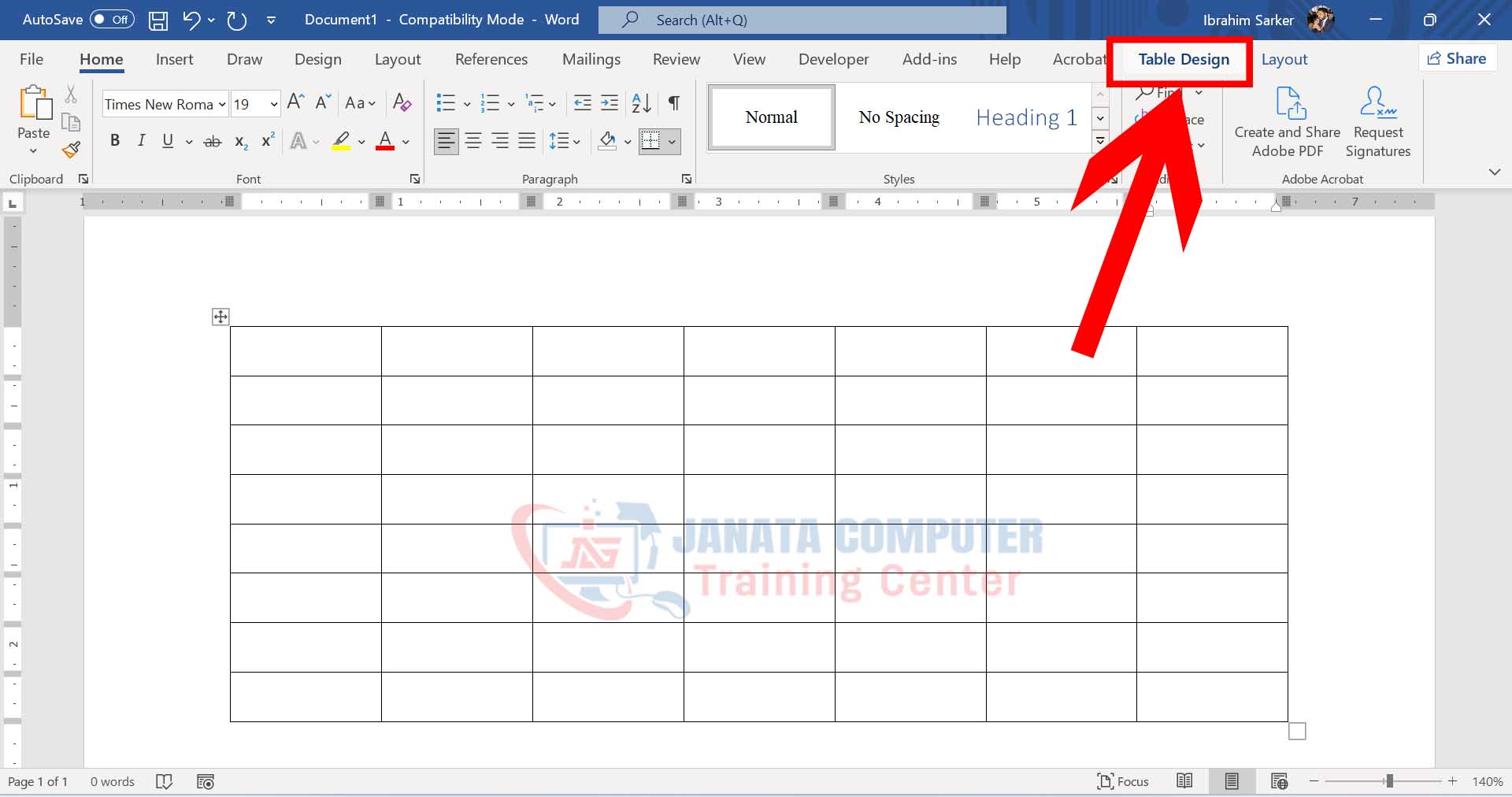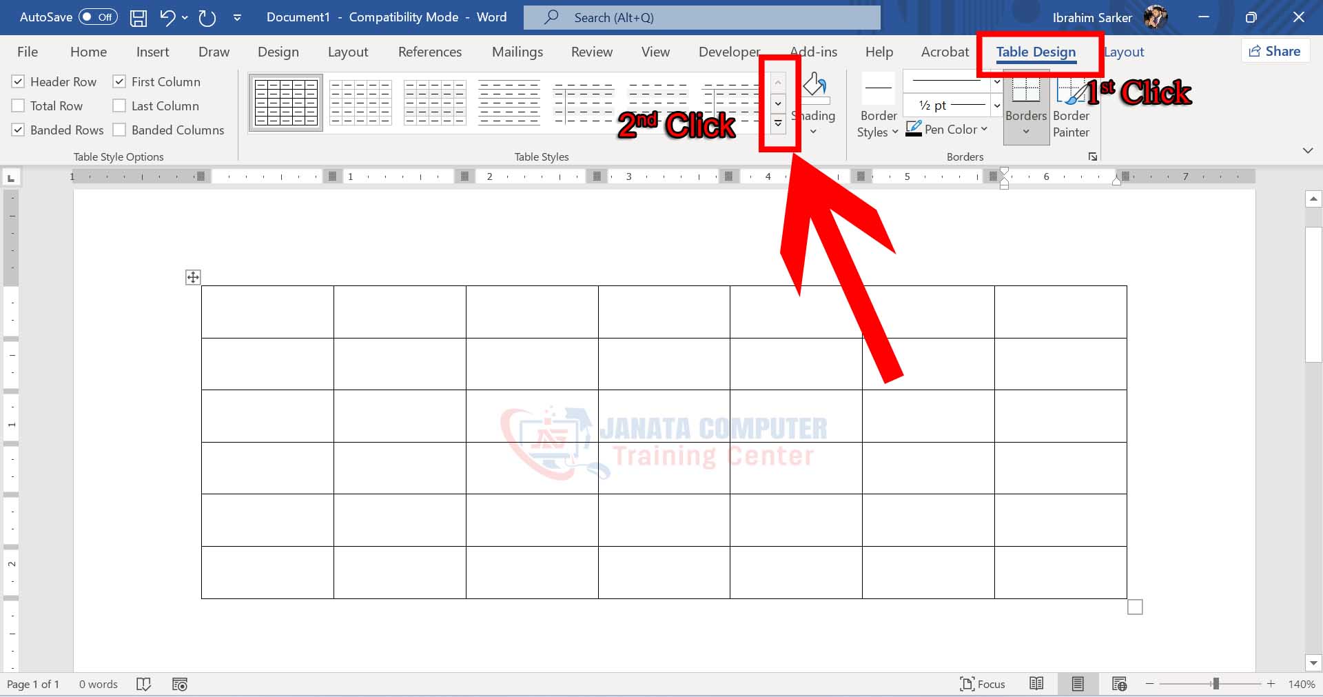 Table-এ ক্লিক করুন। Table Design Tab এ যান।